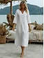 Damen Midikleid Leinenkleid Freizeitkleid Elegant Mode Modern Outdoor Urlaub Ausgehen Normale Passform Einfach Halbarm V Ausschnitt Weiß Sommer Frühling