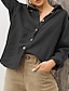 Damen Sommerhemd Baumwoll-Leinen-Hemd Bluse Knöpfe Einfarbig Elegant Lässig Langarm V Ausschnitt Normale Oberteile Täglich Ferien Blau Schwarz Rosa Purpur Grün Sommer Frühling Herbst