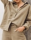Damen Baumwoll-Leinen-Hemden Einfarbig Täglich Stilvoll Basic Langarm Mit Kapuze Normale Oberteile Täglich Blau Marineblau Beige Sommer Frühling Herbst