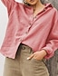 Damen Hemd Baumwoll-Leinen-Hemden Knöpfe Einfach Täglich Stilvoll Basic Kurzarm Hemdkragen Normale Oberteile Täglich Arbeit Ferien Blau Rosa Rosa Sommer