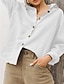 Damen Hemd Baumwoll-Leinen-Hemden Popover-Hemd Strandhemd Einfarbig Einfach Urlaub Mode Lässig Langarm Rundhalsausschnitt Normale Oberteile Streetwear Strand Ferien Weiß Sommer Frühling Herbst