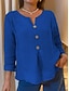 Damen Baumwoll-Leinen-Hemden Bestickt Knöpfe Einfarbig Basic Lässig Dreiviertelarm Rundhalsausschnitt Normale Oberteile Täglich Blau Rosa Aprikose Sommer