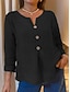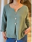 Damen Hemd Baumwoll-Leinen-Hemd Bluse Knöpfe Einfach Stilvoll Klassisch Modern Langarm V Ausschnitt Normale Oberteile Täglich Ferien Ausgehen Blau Schwarz Weiß Grün Aprikose Sommer Frühling