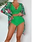 3-teiliger Damenbikini Badeanzug Palme Slips Slim Rückfrei Urlaub Strandbekleidung Blätter V-Ausschnitt Ärmellos Badeanzüge