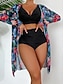 Damen Badeanzug Bikini Dreiteilig Freche Unterhose Bademode Schlank Rückenfrei Urlaub Strandbekleidung Blumen Blätter Neckholder Ärmellos Badeanzüge