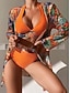 Damen Bikini 3-teiliges Schwimmbad Palm Cheeky Slim Rückensfrei Urlaub Strandbekleidung Floral Blätter V-Ausschnitt Ärmellose Badeanzüge