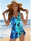 Damen Badeanzug Tankini 2 Stück Junge Bein Bademode Rückenfrei Hohe Taillenlinie Urlaub Strandbekleidung Blumen Blätter Rundhalsausschnitt Ärmellos Badeanzüge