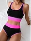 Damen Bikini 2-teiliges Badeanzug Farbblock Slips Bauchkontrolle Hohe Taille Slim Rückenfrei Urlaub Strandbekleidung Blätter U Neck ärmellos Badeanzüge