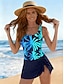 Damen Badeanzug Tankini Zweiteilig Hohe Taillenlinie Bademode Urlaub Mode Blumen Grafik Rundhalsausschnitt Ärmellos Badeanzüge