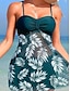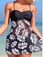 Damen Badeanzug Tankini Zweiteilig Rock Bademode Kordelzug Halter Elegant Urlaub Blumen Blätter Rundausschnitt Ärmellos Badeanzüge