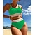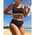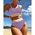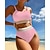 Damen Bikini, Zweiteiler Hochtaillierter, geraffter Bikini Boho Elastisch Ärmellos Bademode Surfen Strand Urlaub Sommer