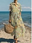 Damen Midikleid Baumwoll Mischung Satinkleid Boho-Kleid Hemdblusenkleid Bohemien Urlaub Ethnisch Ferien Normale Passform Boho Kurzarm Hemdkragen Grün Sommer Frühling
