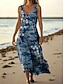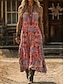 Damen Maxikleid Boho-Kleid Vintage-Kleid Freizeitkleid Vintage Ferien Lässiger Schnitt Boho Blumen Grafik Ärmellos V Ausschnitt Blau Rote Orange Sommer Frühling