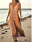 Damen Maxikleid Boho-Kleid Vintage-Kleid Freizeitkleid Vintage Normale Passform Boho Blumen Ärmellos V Ausschnitt Weiß Rosa Leicht Braun Sommer Frühling