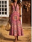 Damen Maxikleid Boho-Kleid Vintage-Kleid Freizeitkleid Vintage Ferien Lässiger Schnitt Boho Blumen Grafik Ärmellos V Ausschnitt Blau Rote Orange Sommer Frühling