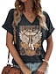 Damen T Shirt Druck Grafik Tiermotiv Buchstabe Vintage Stilvoll Klassisch Kurzarm Rundhalsausschnitt Rundhals Normale Oberteile Täglich Wochenende Weiß Regenbogen Grau Sommer Frühling