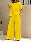 Damen Baumwoll-Leinen-Sets Dreiviertelarm Stehkragen Einfarbig Täglich Betrübt Lässig Täglich Schwarz Gelb Wein Sommer Lässiger Schnitt