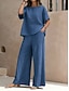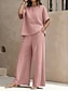 Damen Hosen-Sets Dreiviertelarm Rundhalsausschnitt Einfarbig Elegant Mode Streetwear Lässig Täglich Schwarz Weiß Wein Sommer Normale Passform