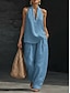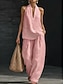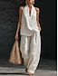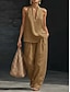 Damen Baumwoll-Leinen-Sets Dreiviertelarm Stehkragen Einfarbig Täglich Betrübt Lässig Täglich Schwarz Gelb Wein Sommer Lässiger Schnitt