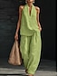 Damen Hosen-Sets Kunstbaumwollleinen Kurzarm Stehkragen Einfarbig Mode Streetwear Lässig Täglich Outdoor Blau Gelb Grün Frühling & Sommer Lässiger Schnitt