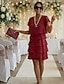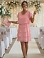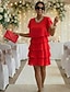 Damen Minikleid Cocktailkleid Kleid für Hochzeitsgäste Chiffonkleid Stufenkleid Elegant Klassisch Abendgesellschaft Date Ausgehen Normale Passform Einfarbig Kurzarm Rundhalsausschnitt Rosa Wein Rote