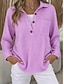 Damen Pullover Sweatshirt Knöpfe Einfach Lässig Langarm Revers Normale Oberteile Straße Alltagskleidung Blau Weiß Rosa Dunkelpink Purpur Frühling Herbst Winter