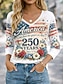 Amerikanischer Unabhängigkeitstag Damen T Shirt Druck Grafik Flagge Vintage Stilvoll Klassisch Kurzarm V Ausschnitt Normale Oberteile Täglich Blau Schwarz Weiß Sommer Frühling