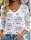 Amerikanischer Unabhängigkeitstag Damen T Shirt Druck Grafik Flagge Stilvoll Klassisch Langarm Dreiviertelarm V Ausschnitt Normale Oberteile Täglich Wochenende Blau Weiß Rote Rot / Blau Frühling