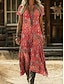 Damen Maxikleid Sommerkleid Urlaub Lässig Boho Täglich Strand Ausgehen Lässiger Schnitt Grafik Farbblock Langarm V Ausschnitt Blau Rote Braun Grün Sommer Frühling Herbst