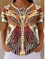 Damen T Shirt Farbblock Viertel Postleitzahl Grafik Geometrisch Tropisch Mode Hawaiianisch Kurzarm Rundhalsausschnitt Normale Oberteile Strandhochzeit Täglich Sport Gelb Rote Sommer Frühling