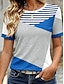 Damen T Shirt Farbblock Druck Grafik Geometrisch Ozean Vintage Mode Stilvoll Kurzarm Rundhalsausschnitt Normale Oberteile Täglich Blau Weiß Rote Marineblau Sommer Frühling