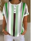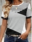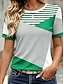 Damen T Shirt Farbblock Druck Grafik Geometrisch Gestreift Vintage Mode Stilvoll Kurzarm Rundhalsausschnitt Normale Oberteile Täglich Blau Gelb Braun Grau Sommer Frühling