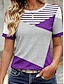 Damen T Shirt Farbblock Druck Grafik Geometrie Vintage Mode Stilvoll Kurzarm Rundhalsausschnitt Lange Oberteile Lässig Täglich Wochenende Blau Purpur Grün Schwarz Sommer Frühling