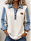 Damen Pullover Sweatshirt Farbblock Lässig Langarm Revers Normale Oberteile Beige Frühling Herbst