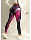 Damen Yogahose Yoga-Leggings Elastischer Bund Po-Lifting Bauchkontrolle Pilates Fitnesstraining Training Hosen Farbverläufe Rosa Purpur Grün Herbst Sport Sportkleidung Dehnbar Schlank