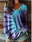 Damen T Shirt Druck Ombre Grafik Farbverläufe Vintage Stilvoll Klassisch Langarm V Ausschnitt Normale Oberteile Täglich Wochenende Blau Sommer Frühling