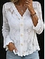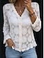 Damen Spitzenbluse Bluse Spitze Knöpfe Einfarbig Elegant Stilvoll Lässig Langarm V Ausschnitt Normale Oberteile Täglich Schwarz Weiß Beige Sommer Frühling Herbst