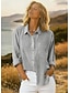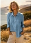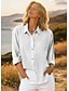 Damenhemd Leinenähnlich Atmungsaktiv Leicht Button-Down Tunika Hemd Kragen Lange Ärmeln Mode Druck Reguläre Tops Lässig Weiß Frühling Herbst
