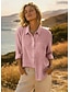 Damen Hemd Knopfleiste Bluse Kunstbaumwollleinen Knöpfe Druck Grafik Lässig Strand Langarm Hemdkragen Lange Oberteile Urlaub Ausgehen Schwarz Weiß Gelb Rosa Orange Frühling & Herbst