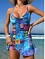 Damen Badeanzug Tankini Rock Bademode Halter Elegant Urlaub Grafik Geometrisch V Ausschnitt Ärmellos Badeanzüge