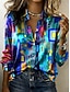 Damen Hawaiian Hemden Fließende Tops Vintage Lässig Grafik Geometrisch Lange Tops Langarm Hemd Kragen Patchwork Knöpfe Druck Form Fit Urlaub Arbeit Täglich Hellblau Sommer Urlaub Bekleidung