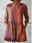 Damen Kleid-Set Shiftkleid Sommerkleid Elegant Grafik Geometrisch Geschichtet Druck Midikleid Dreiviertelarm Rundhalsausschnitt Täglich Urlaub Blau Purpur Grün Sommer Frühling Normale Passform