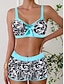 Damen Bikini 2 Teilig Badeanzug Unterdraht Frech Slim Rückenfrei Urlaub Strandmode Blumen Grafik Halterhals Ärmellose Badeanzüge