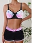 Damen Tankini 2-teiliges Badeanzug Boy Leg Rückenfrei Urlaub Strandbekleidung Geometrischer U-Ausschnitt Ärmellose Badeanzüge