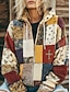 Damen Kapuzenpullover Grafik Geometrisch Stammes Warm Vintage Lässig Langarm Mit Kapuze Normale Oberteile Straße Alltagskleidung Lässig Patchwork Druck Fronttasche Blau Grün Frühling Herbst Winter