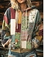 3D-Druck Vintage Boho Kapuzenpullover Damen Patchwork Kapuzenpullover Sweatshirt Floral Pullover Sweatshirt Lässig Kapuzen Street Alltagskleidung Patchwork Druck Vordertasche Pink Lila Grün Frühling