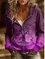 Damen Pullover Sweatshirt Hoodies mit Reißverschluss Weihnachtsmann Einfach Klassisch Lässig Ärmellos Mit Kapuze Normale Oberteile Heim Alltagskleidung Ferien Fronttasche Schwarz Weiß Purpur