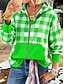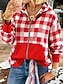 Damen Hoodies mit Reißverschluss Geometrisch Karomuster Warm Vintage Lässig Langarm Mit Kapuze Normale Oberteile Straße Alltagskleidung Lässig Reißverschluss Druck Fronttasche Blau Weiß Wein Rote