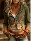 Damen Hoodie Pullover Sweatshirt Übergröße Lange Ärmel Lässig Grafik Tier Katze Vintage Fashion Western Kapuze Regulär Oberteile Straße Alltag Druck Fronttasche Schwarz Herbst Winter