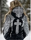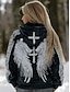 Damen-Kapuzenpullover mit keltischem Kreuz und Flügeln, keltischem Knoten, kuscheligem Design, Vintage-Stil, Boho-Look, langen Ärmeln, Kapuze, normaler Passform, lässigem Streetstyle, Print,